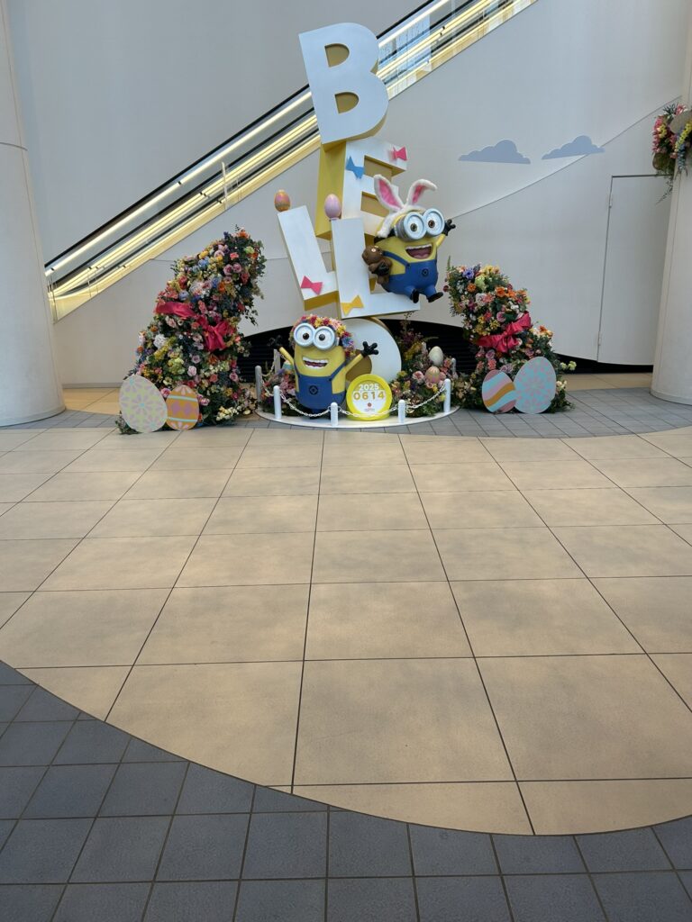 フロントまわりの壁や装飾がミニオンでいっぱいで、入口にはミニオンの像までいて、チェックイン前からテンション爆上がり。