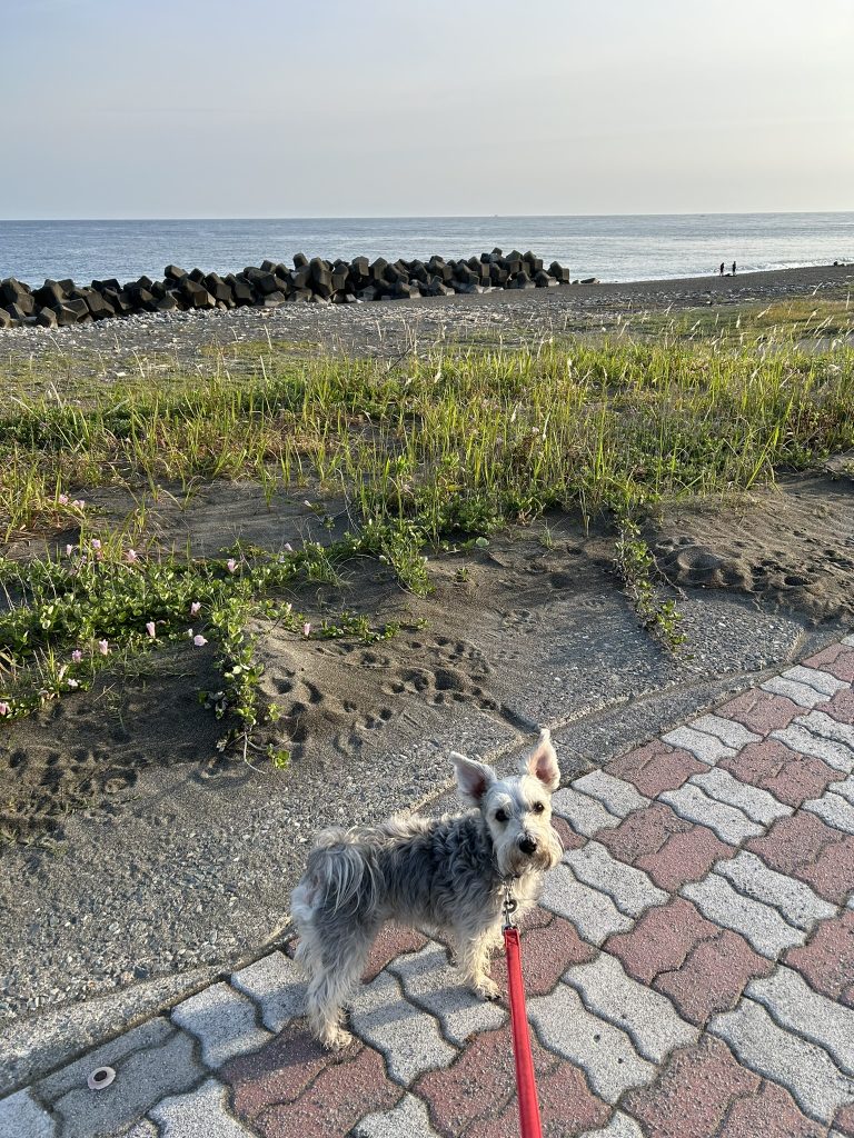 朝のお散歩 波の音がする