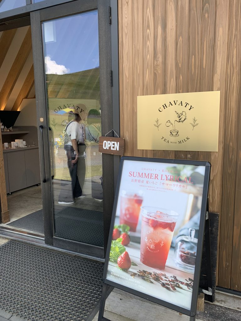 「白馬ヒトトキノモリ」エリアに着いた後は、表参道や京都嵐山で人気のティーラテと焼き立てスコーンの専門店 「CAFE CHAVATY HAKUBA(チャバティ白馬)」に行きました。