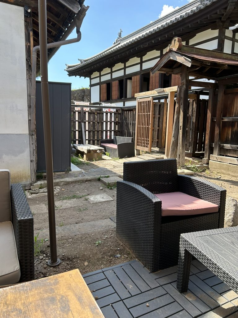 広々としたスペースにはソファーやパラソルがあり、水道も完備されていておしゃれな雰囲気です。
