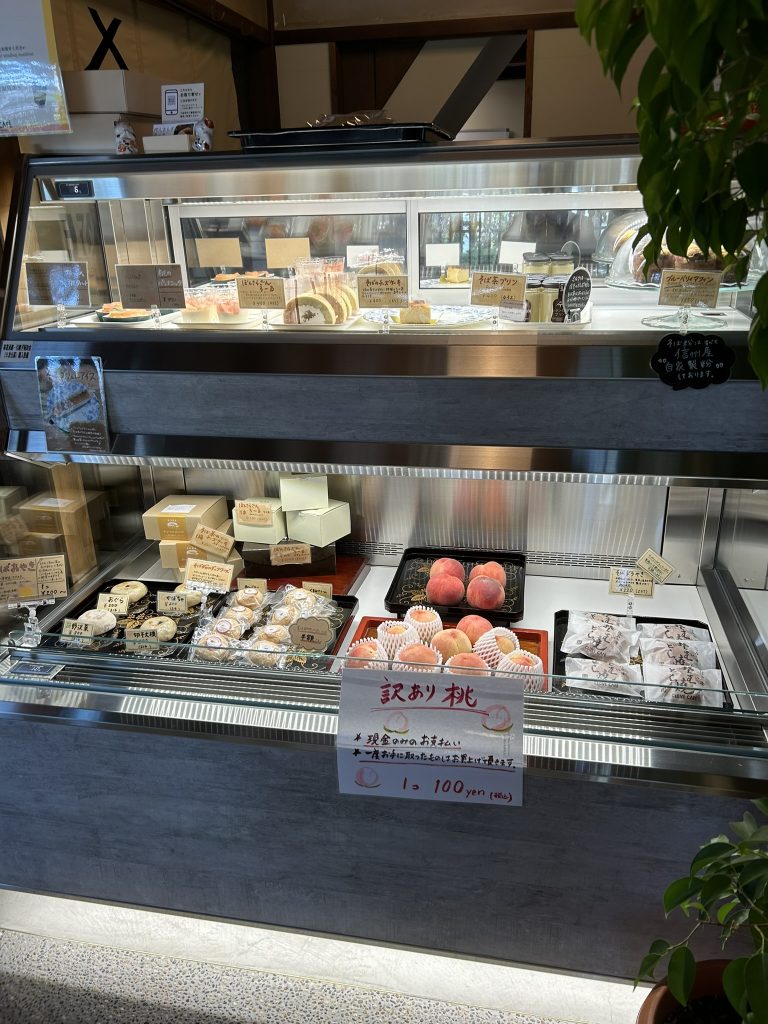 帰りには、「そばおやき」と「訳アリ桃」をお土産に購入。