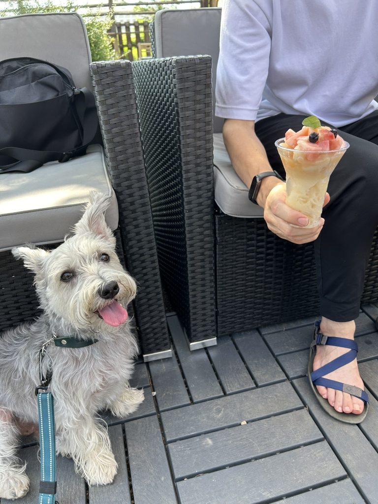ラテもテラスでおとなしく過ごしていて、まったりとした時間を共有できました。