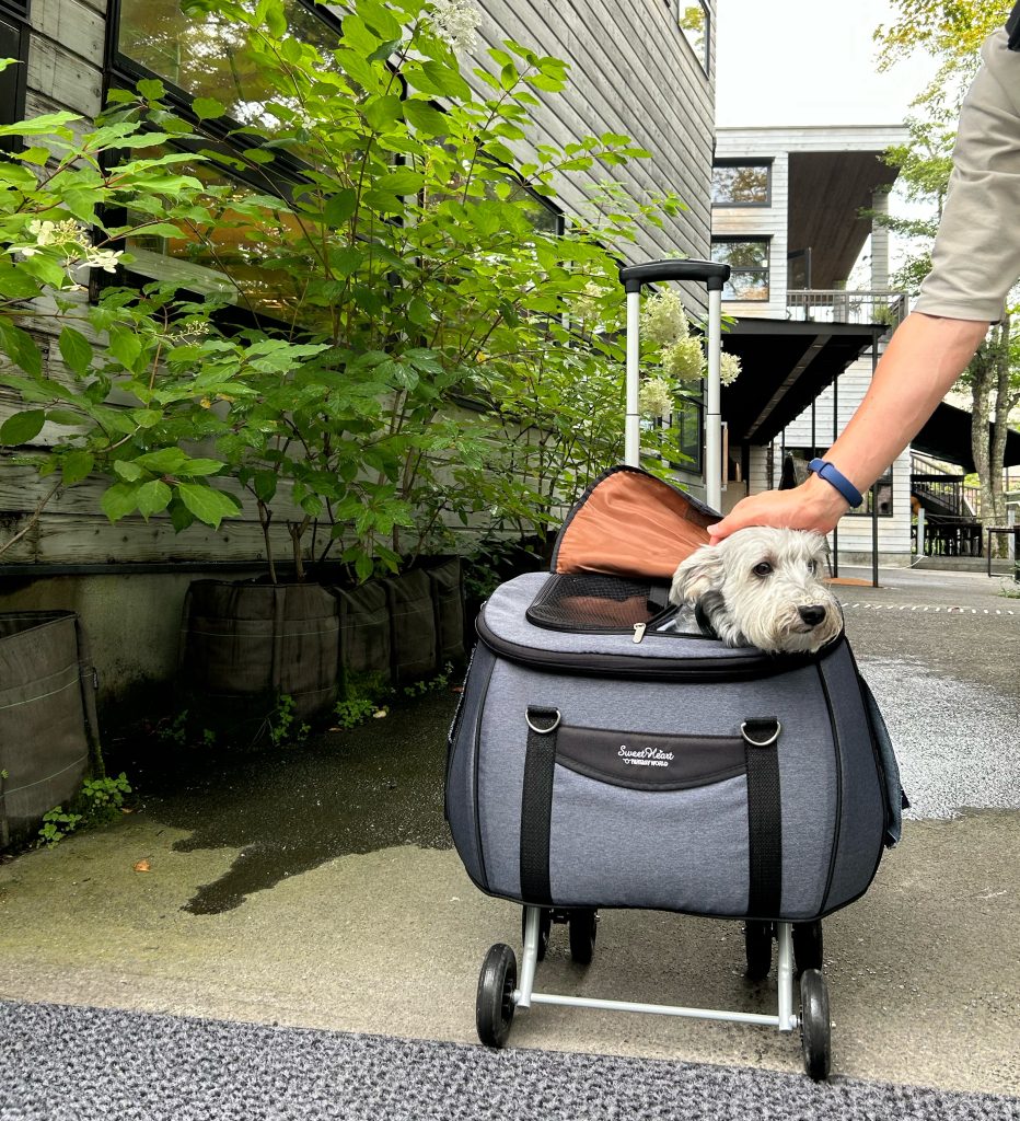 ラテは人混みが苦手なので、混んでいるときはカートの中でおとなしくしてもらっています。