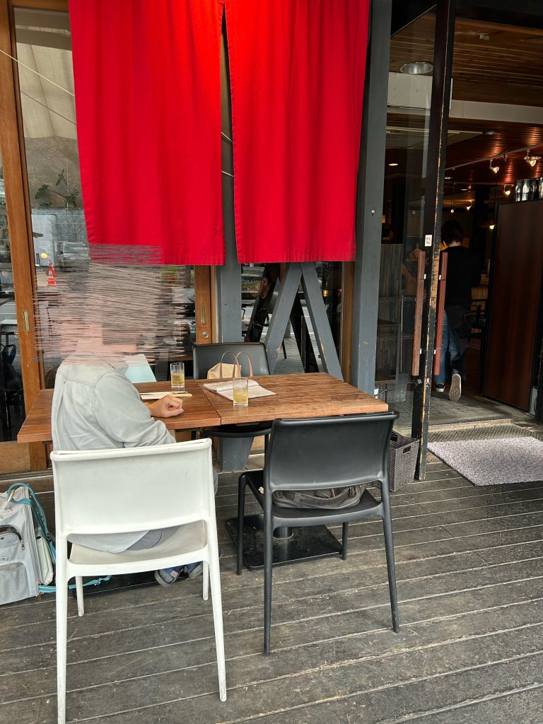 テラス席に座っていると、入口を間違えて入ってきた外国のお客さんに、